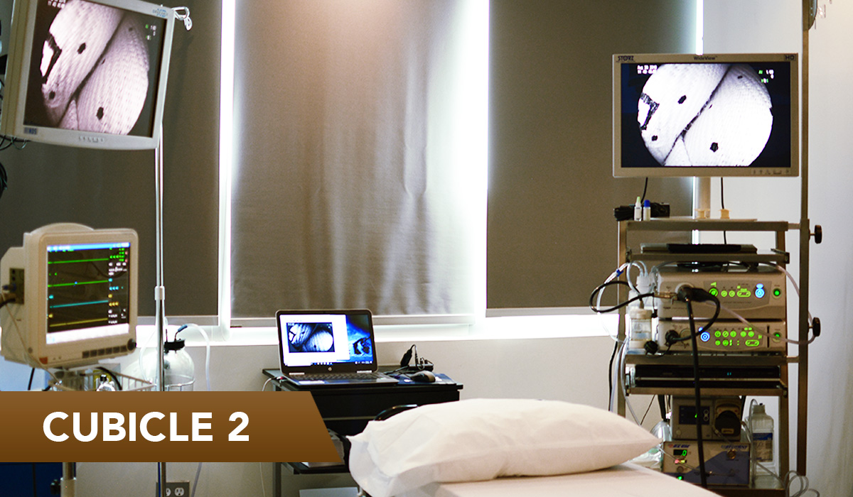 We have two completely independent areas, in order to attend two patients and perform their studies simultaneously, two endoscopists can work in 2 areas separated from each other. Both areas fully equipped in the same way with high-tech endoscopic equipment and high definition image.